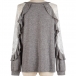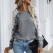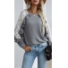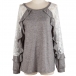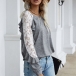 Fashion Lace Spliced Long Sleeve Round Neck Stringy Selvedge T-shirt