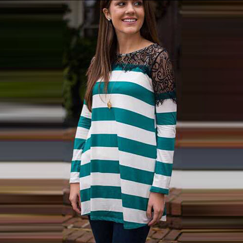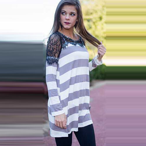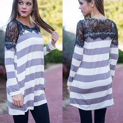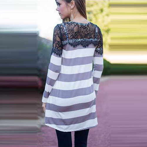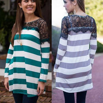 with long sleeve,round neck and loose silhouette design. It see-through lace spliced design makes