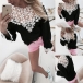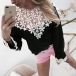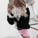 Fashion Lace Spliced Long Sleeve Round Neck T-shirt