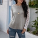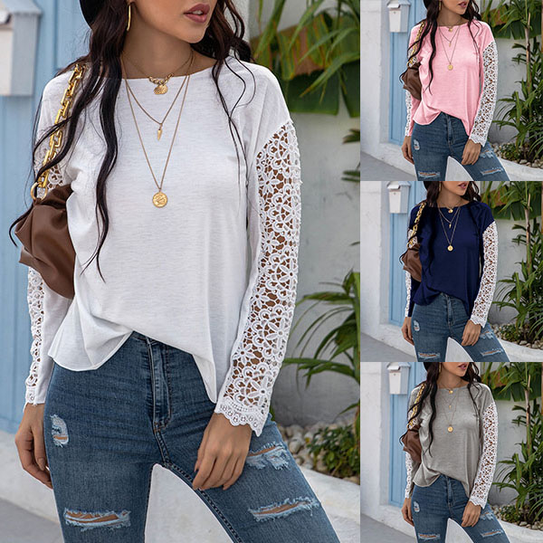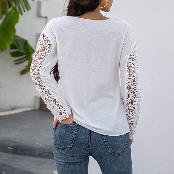 Fashion Lace Spliced Long Sleeve Round Neck T-shirt