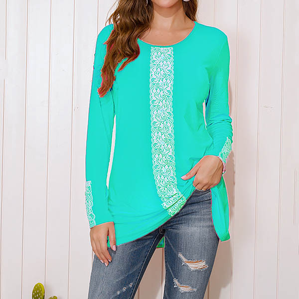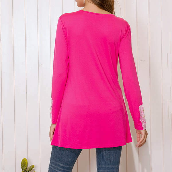 Fashion Lace Spliced Long Sleeve Round Neck T-shirt