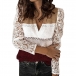Fashion Lace Spliced Long Sleeve V-neck Contrast Color Knit Top