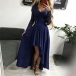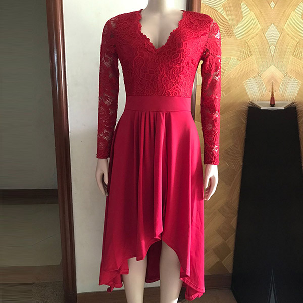 Fashion Lace Spliced Long Sleeve V-neck Iregular Hemline Dress