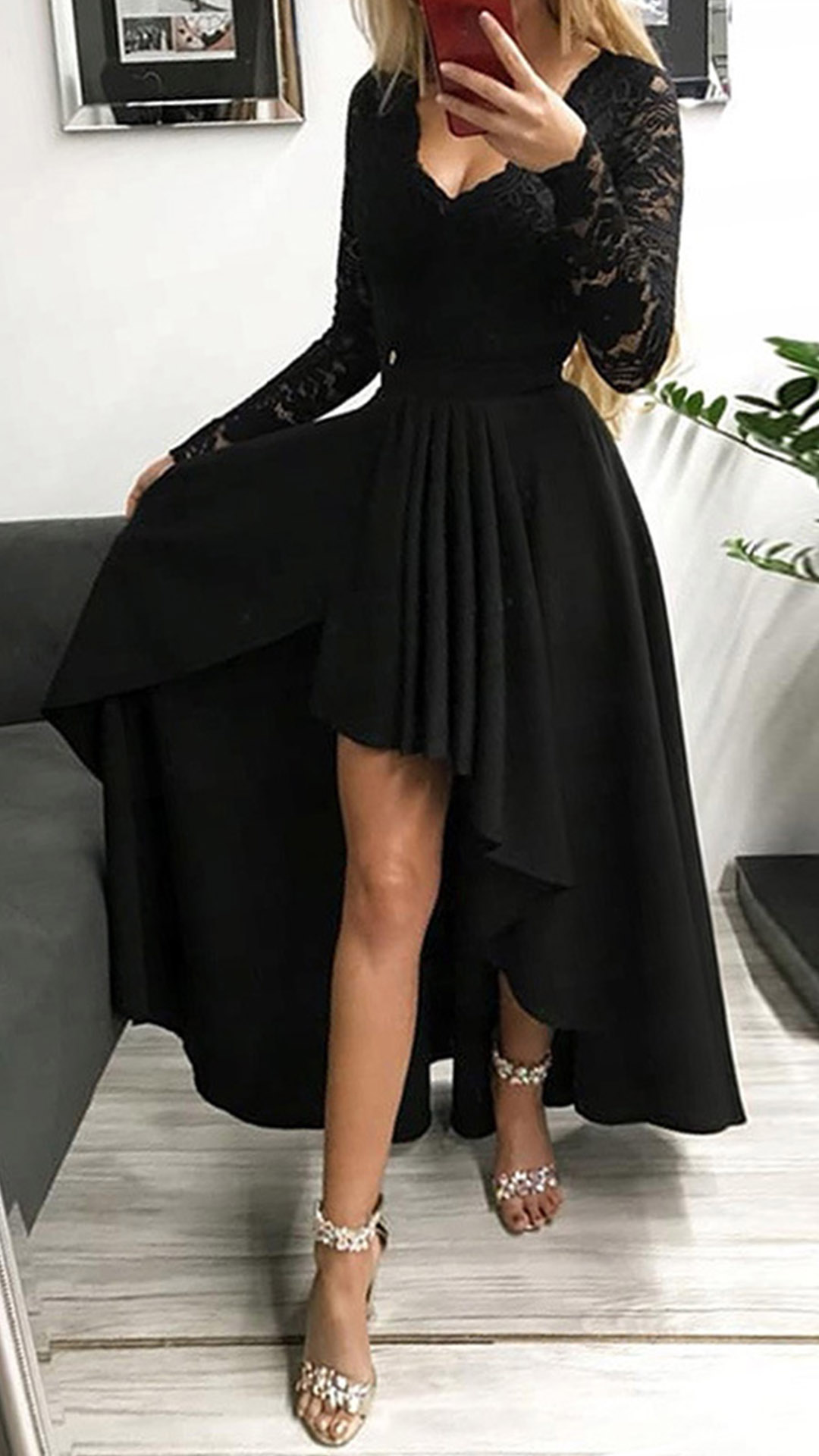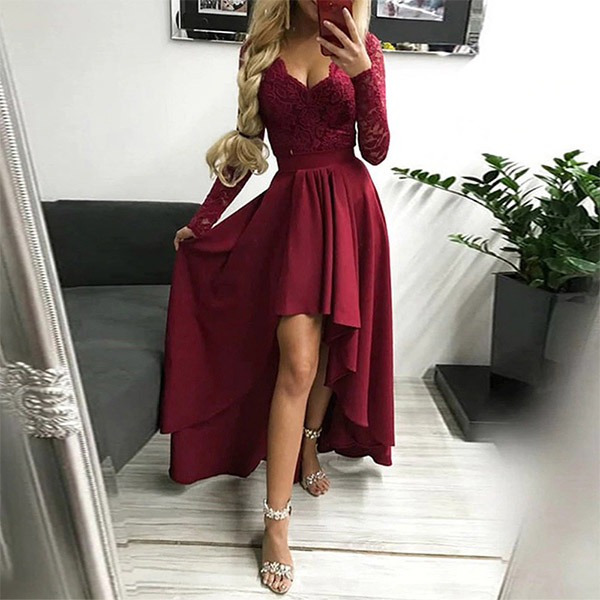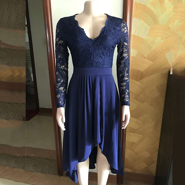 This dress features lace splicing adds a touch of elegance, while the irregular hemline adds a touch of fun and personality. Is it your style?