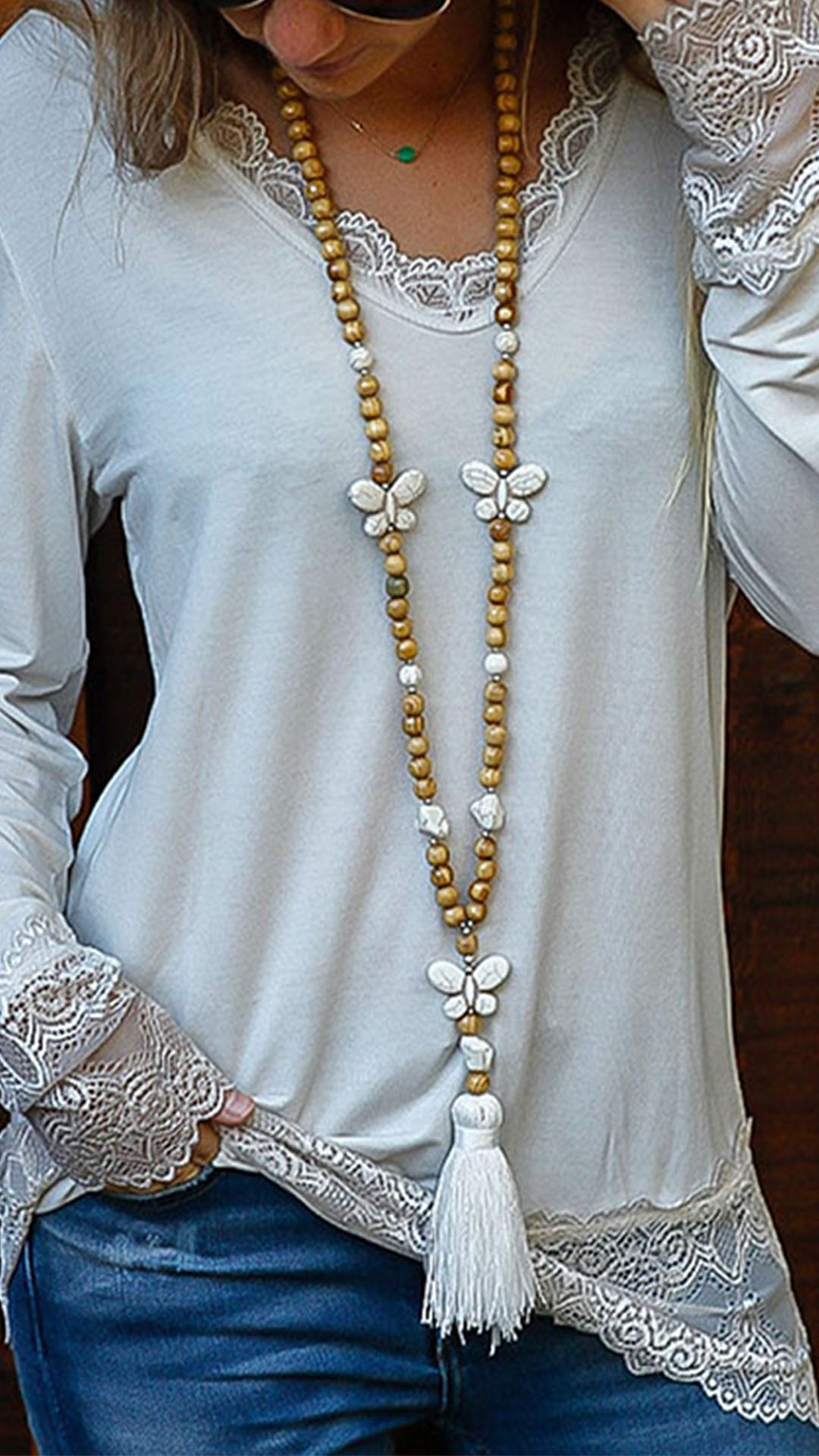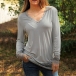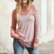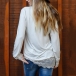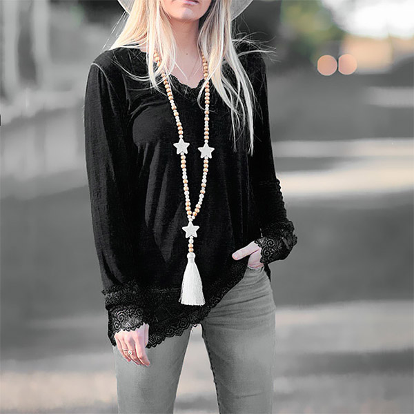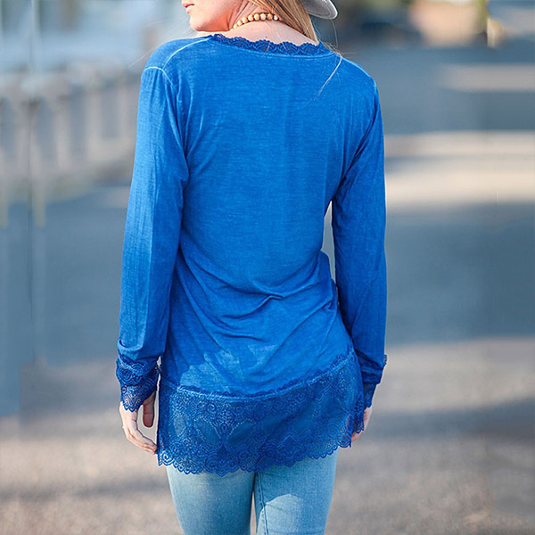 Fashion Lace Spliced Long Sleeve V-neck Solid Color T-shirt
