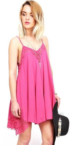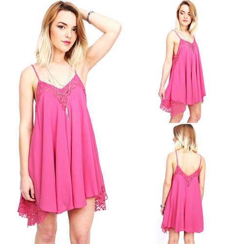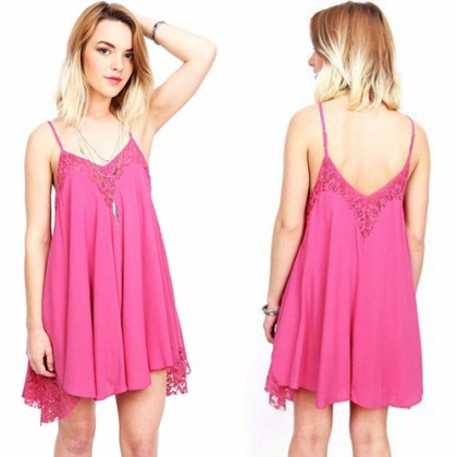 Fashion Lace Spliced Loose Chiffon Sling Dress