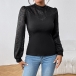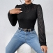 Fashion Lace Spliced Mock Neck Long Sleeve Shirt