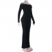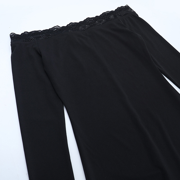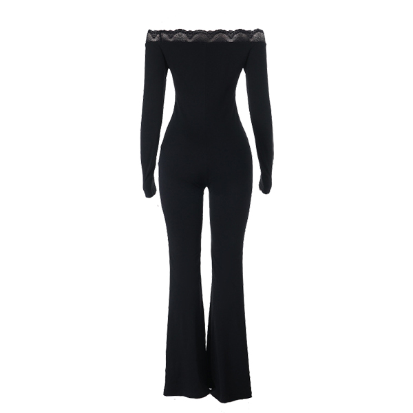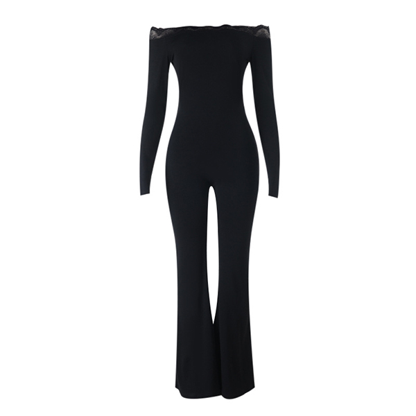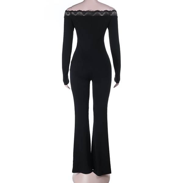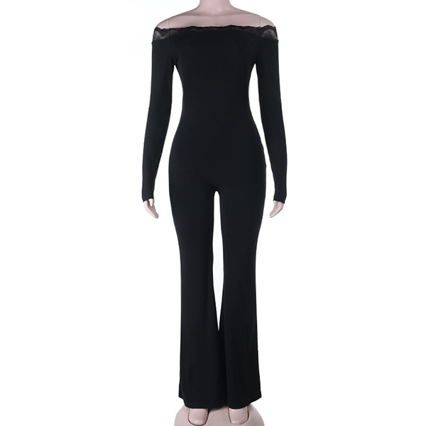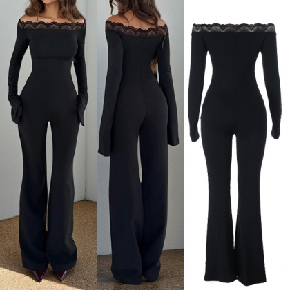 Fashion Lace Spliced Off-the-shoulder Long Sleeve Straight-cut Jumpsuit