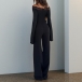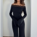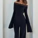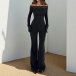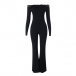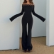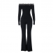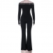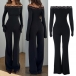 This jumpsuit features romantic off-the-shoulder styling with delicate lace splicing and classic straight-cut silhouette for contemporary feminine elegance. Perfect for romantic occasions, elegant styling, or sophisticated formal coordination.
