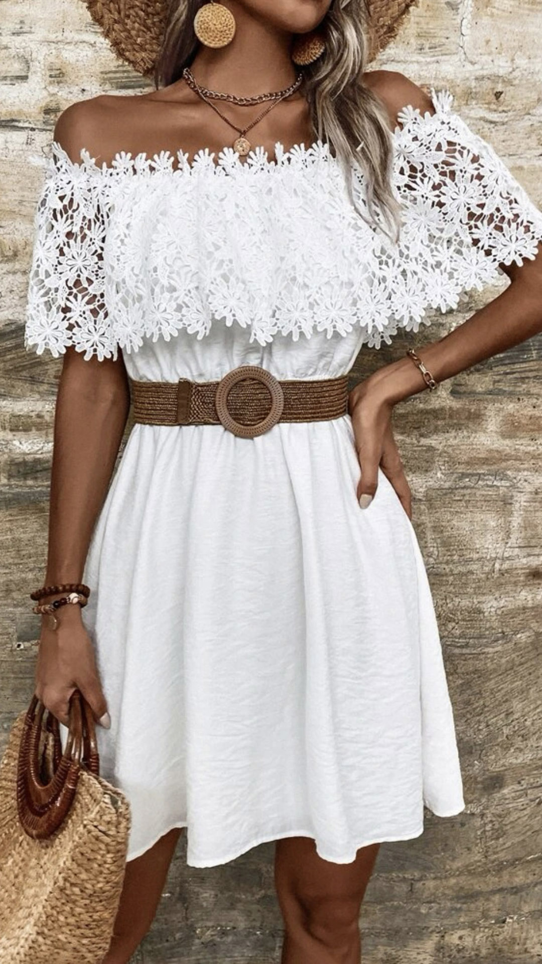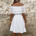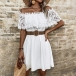 Fashion Lace Spliced Off-the-shoulder Mini White Dress