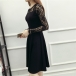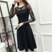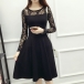Fashion Lace Spliced Round Neck Long Sleeve A-line Dress