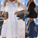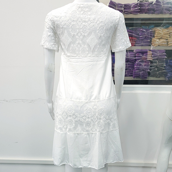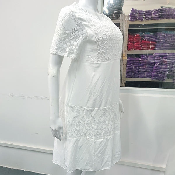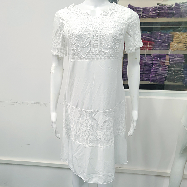 This dress is a perfect blend of fashion and femininity. With its lace spliced details, round neckline, and short sleeves, it exudes a sense of elegance and style.