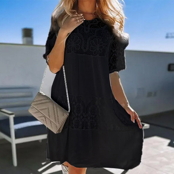 Fashion Lace Spliced Round Neck Short Sleeve Dress