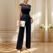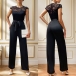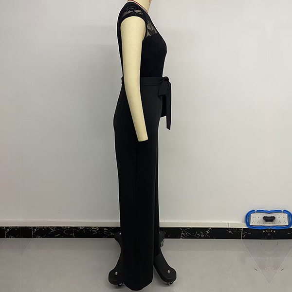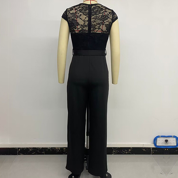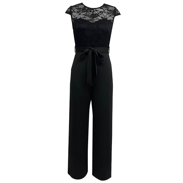 This fashionable jumpsuit combines the elegance of lace with a sleek and straight-cut silhouette, creating a sophisticated and feminine look. Pairing it with strappy heels or elegant sandals can create a formal, evening-worthy look, while opting for flats or low-heeled shoes can make it more suitable for daytime wear.
