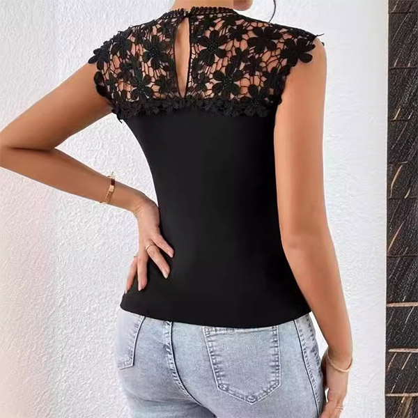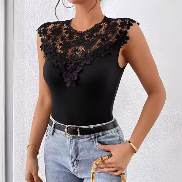 Fashion Lace Spliced Round Neck Sleeveless Shirt