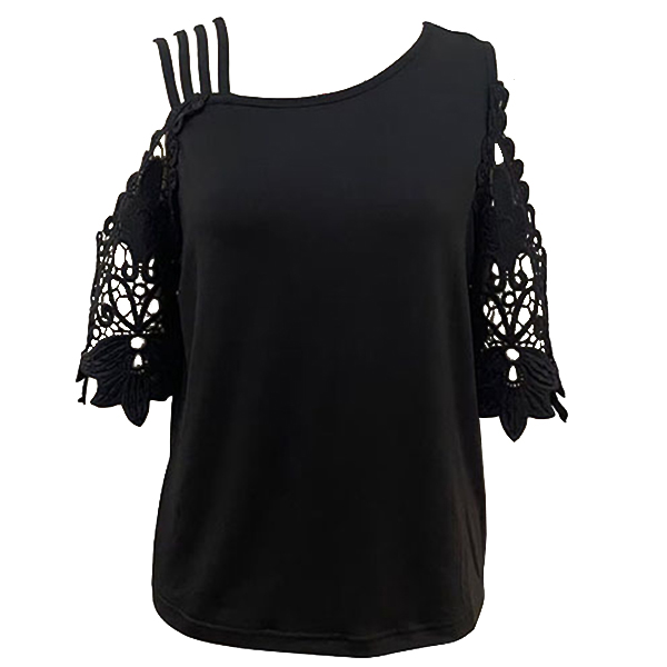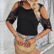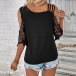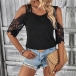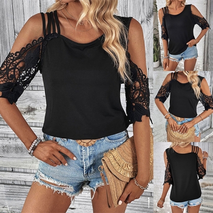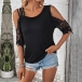 Fashion Lace Spliced Short Sleeve Open-shoulder Shirt