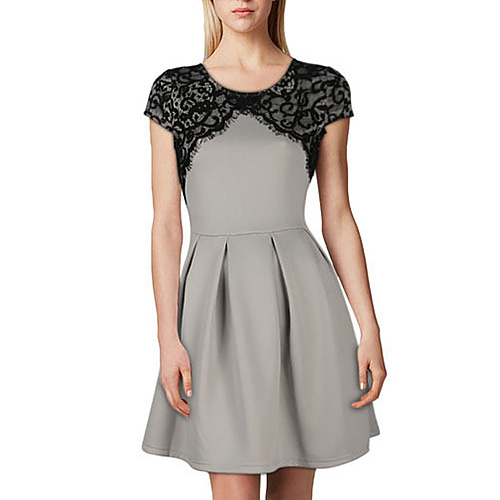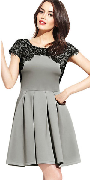 round neck design,stylish and classical. Lace spliced design makes it look so sweet