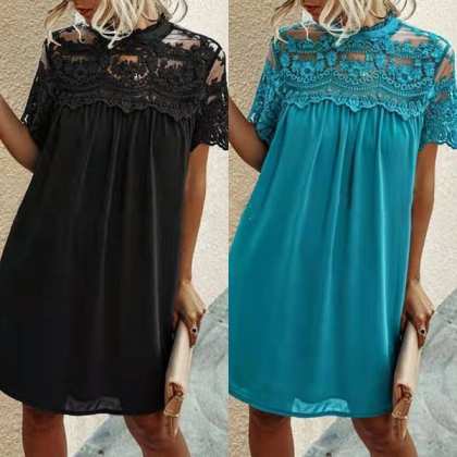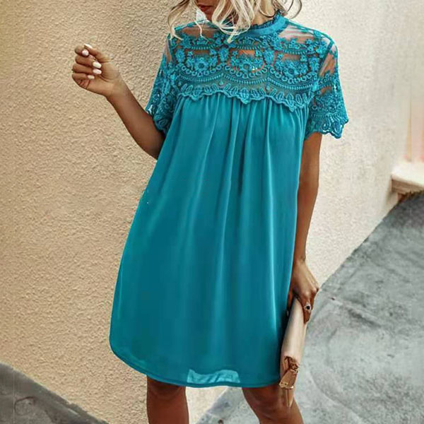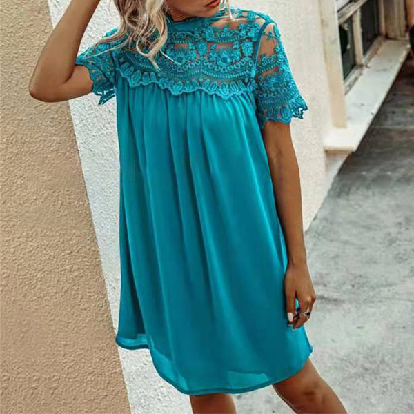 Fashion Lace Spliced Short Sleeve Round Neck Loose Dress