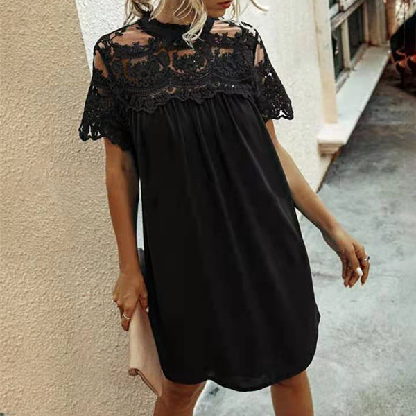 If style and comfort is what you're seeking for,then this dress is sure to strike your fancy. Solid color style,the soft fabric and loose silhouette design can ensure you a comfortable day,while the lace spliced details will further enhance its entire charm. For your daytime out and night dating,this dress can be your wise choice.