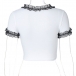 Fashion Lace Spliced Short Sleeve Round Neck Puppy Printed Crop Top