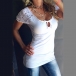 The best way to amplify your sun-soaked weekends is with a t-shirt such as this creation. Crafted in a solid color,the fit silhouette design can showcase your perfect body-line. And the lace spliced short sleeve design will enhance your feminine appeal. No matter match with any kinds bottoms,it can hardly go wrong!