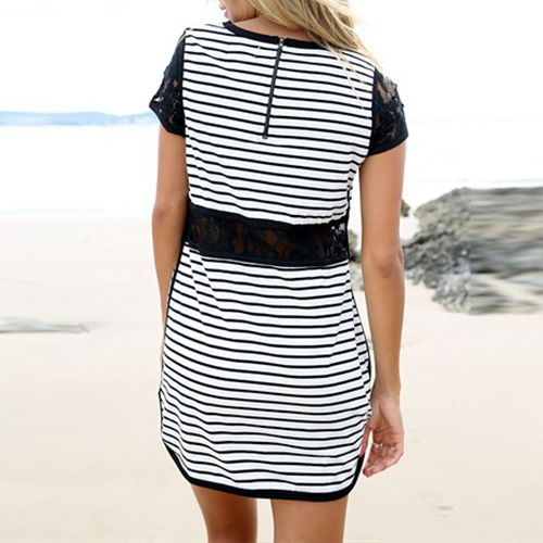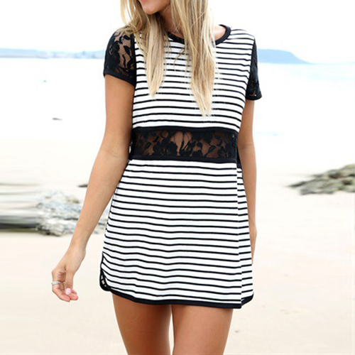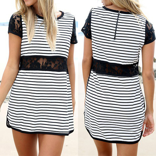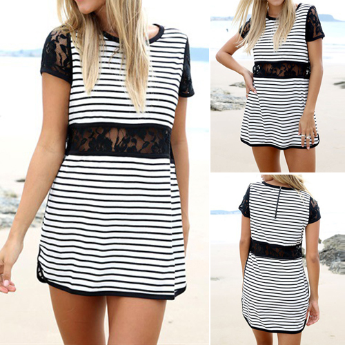 That's why we love this short sleeve dress. Striped style,with lace spliced design makes it