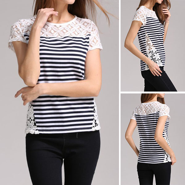 Add a different style t-shirt such as this one to update your t-shirt collections. Striped style,designed with short sleeve,