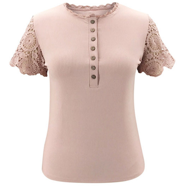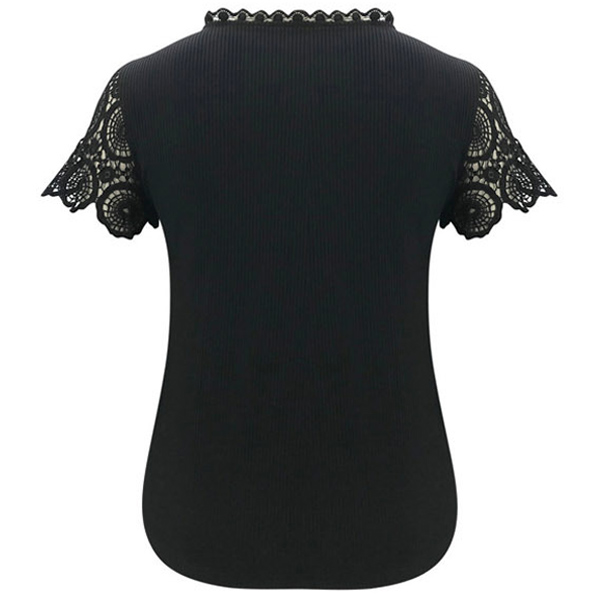 Fashion Lace Spliced Short Sleeve Round Neck T-shirt