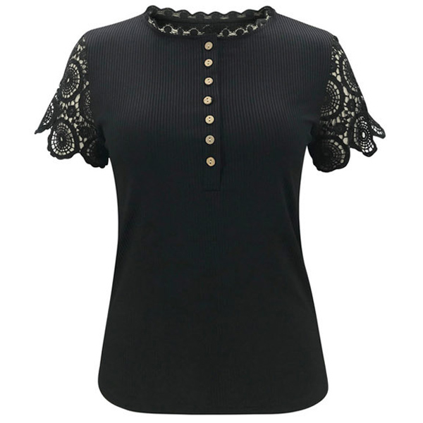 Your wardrobe calls for such a stylish and all-match t-shirt. The lace spliced details not only enrich the design style,but also boost its entire charm. Finished with short sleeve,round neck and a simple,clean silhouette,this t-shirt allows to be matched with different style bottoms like shorts,skirts,jeans and so on.