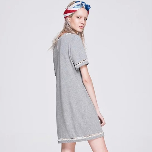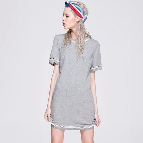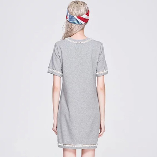 is outfitted with lace spliced and a loose silhouette for an eye-catching look. Just adorn the contrast