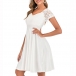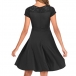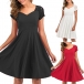 Fashion Lace Spliced Short Sleeve V-neck High Waist Solid Color Dress