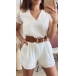 Fashion Lace Spliced Short Sleeve V-neck High Waist Solid Color Romper