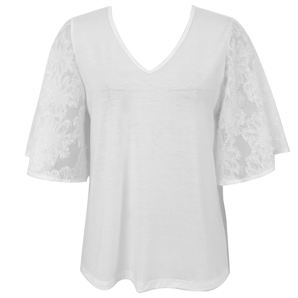 This shirt features delicate lace detailing along the short sleeves, a flattering V-neckline. It is perfect for casual daily wear!