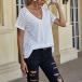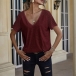 Fashion Lace Spliced Short Sleeve V-neck Solid Color T-shirt