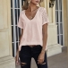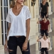 Crafted from soft and breathable fabric,with short sleeve,v-neck and a loose silhouette,this t-shirt is sure to offer you a comfortable day. And the lace spliced details break the simple and dull design style. This t-shirt that combines of cozy and stylish vibes is worth to have a place in your wardrobe.