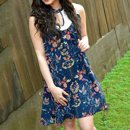 vibrant floral print makes this dress look so eye-catching. Finished with sleeveless and cozy