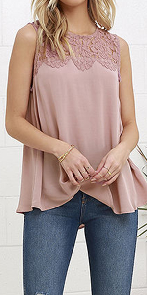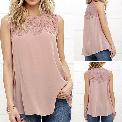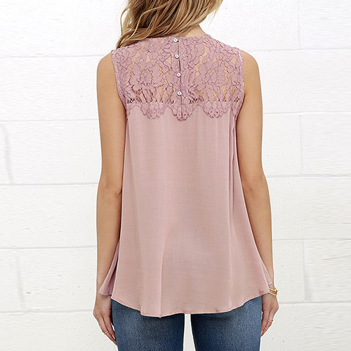 Combination of lace and chiffon elements,sweet yet feminine. Lace spliced style,with sleeveless,