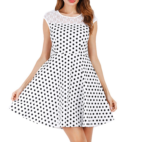 if you have this dress on hand. Lace spliced design can better enhance your female charm,while the dots printed design