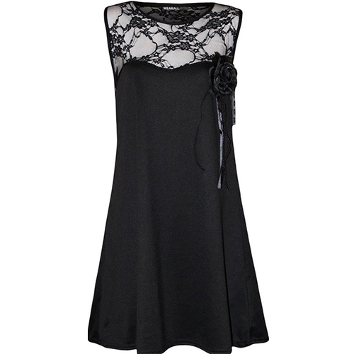 Add this simple and stylish dress to your smart ensemble. Lace spliced style,with sleeveless,