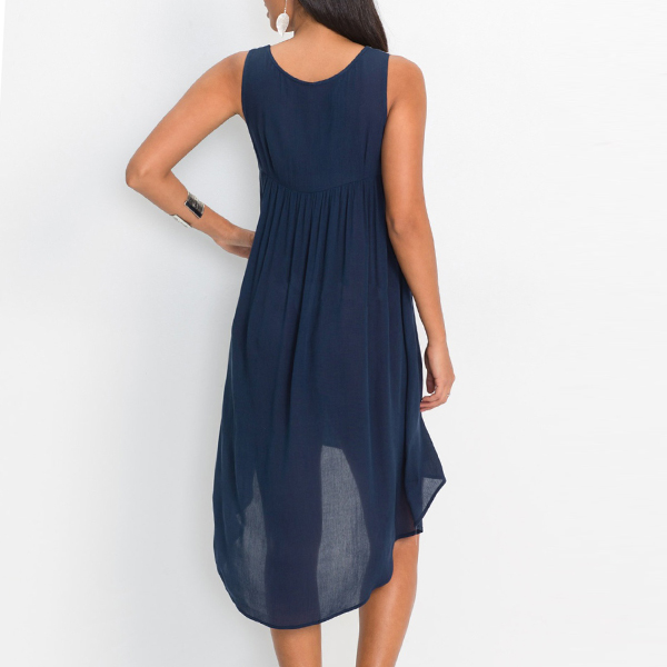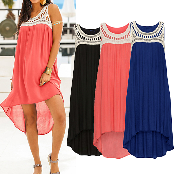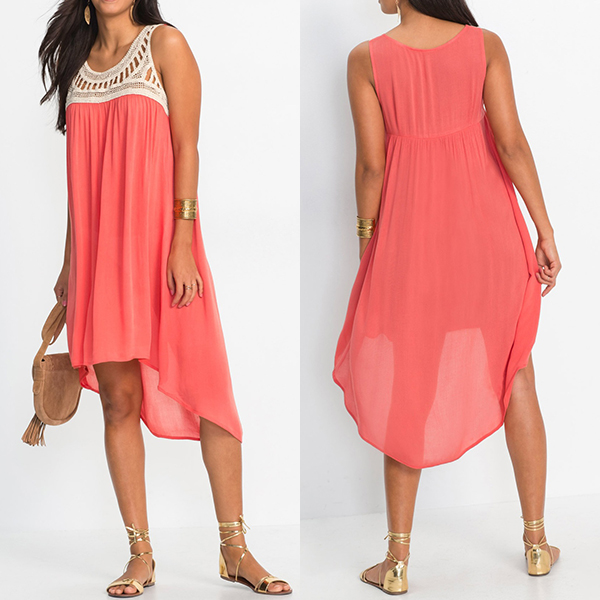 Choose this chiffon dress,then you have chosen a cool summer! Designed with sleeveless,round neck,high-low hem and