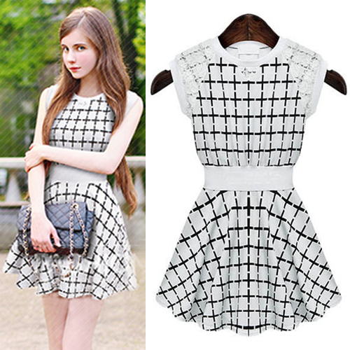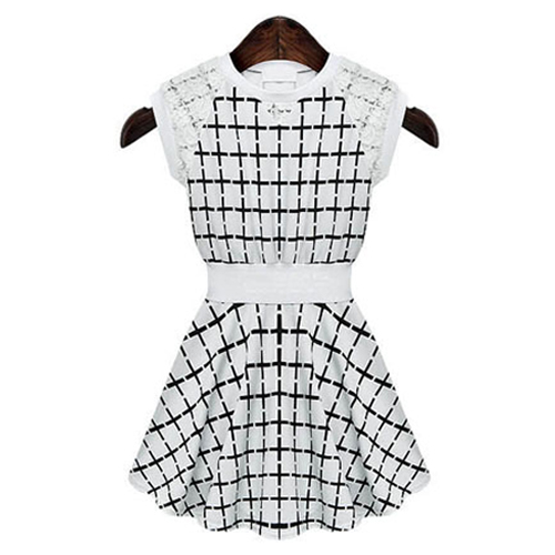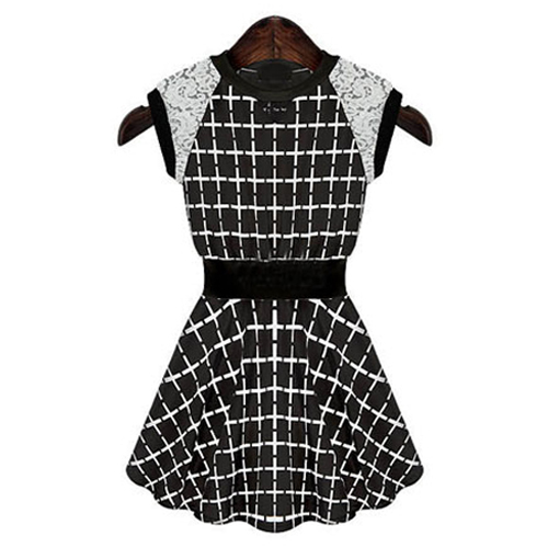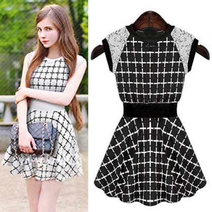 Plaid style,stylish and elegant. Lace spliced design adds its sweet and feminine