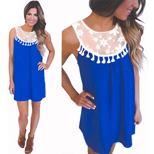 in this hot summer. Lace spliced design makes it more feminine. Loose silhouette