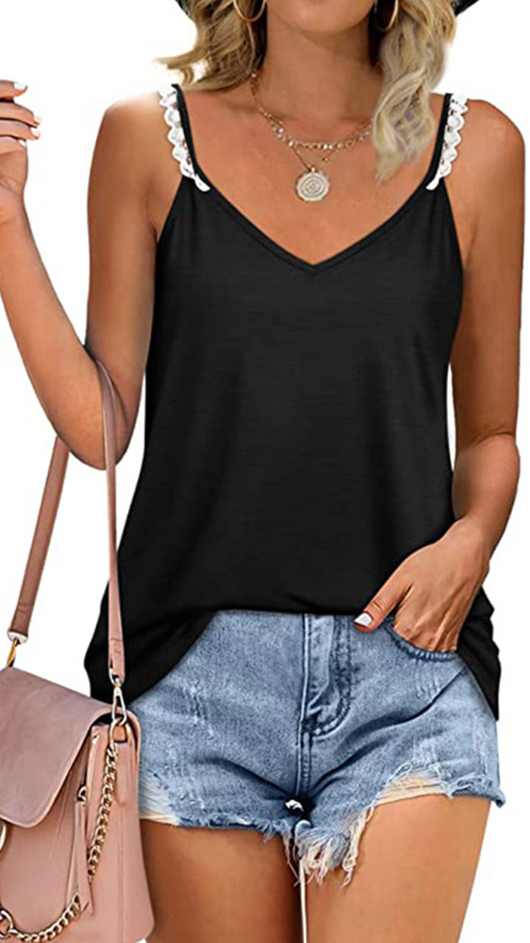 This fashionable slip shirt is perfect for layering or wearing on its own. The lace spliced shoulder strap detail adds a touch of femininity, wanna have a try?