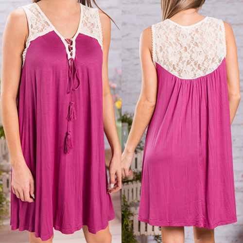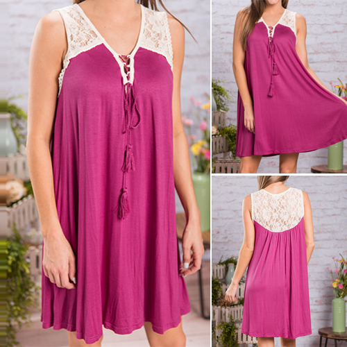 Lace spliced style,with sleeveless,v-neck and a loose silhouette,this dress can keep you