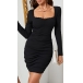 Fashion Lace Spliced Square Neck Long Sleeve Bodycon Dress
