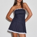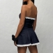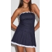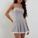 Fashion Lace Spliced Strapless Pleated Hemline Mini Dress