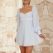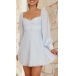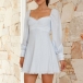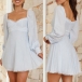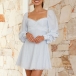Fashion Lace Spliced Sweetheart Neckline Puff Long Sleeve Mini Dress