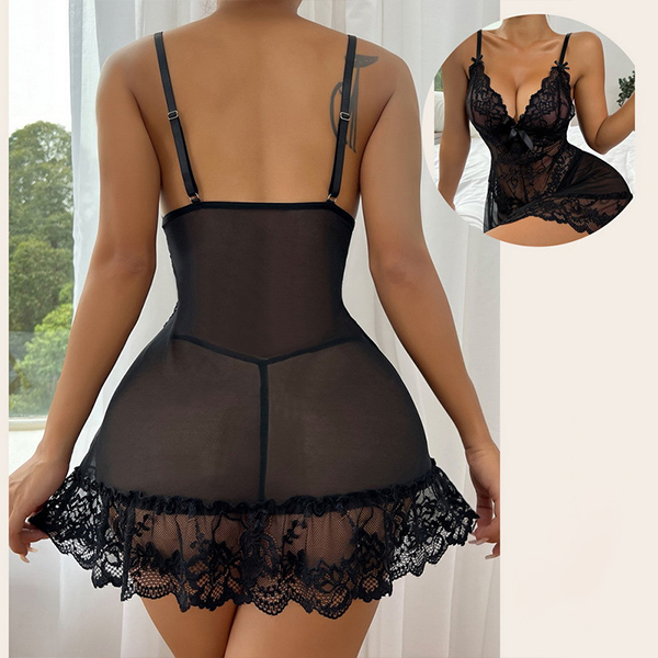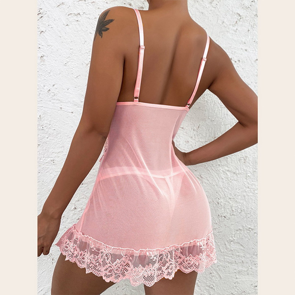 Fashion Lace Spliced V-neck Backless Nightwear Dress