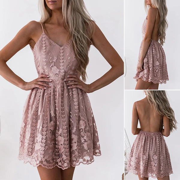 This dress is the epitome of elegance and femininity, perfect for any fashion-forward individual. The lace-spliced design on this dress adds a touch of sophistication and allure. The V-neckline and backless design of this dress add a flirty and sensual element. It accentuates your neckline and back, creating a stunning silhouette that is both alluring and classy.