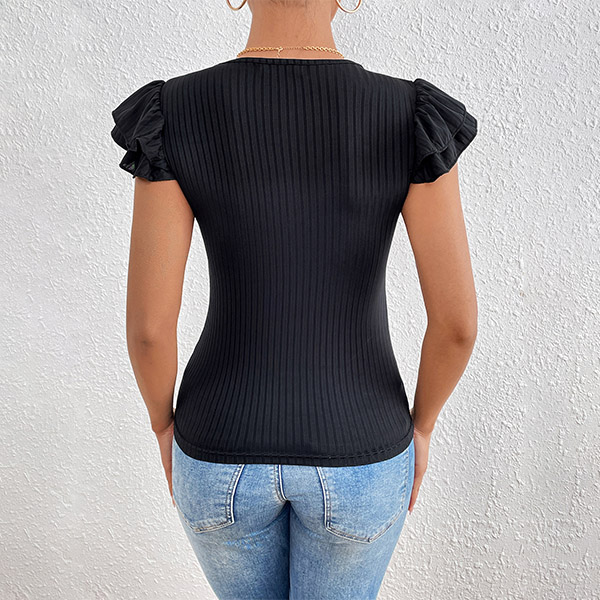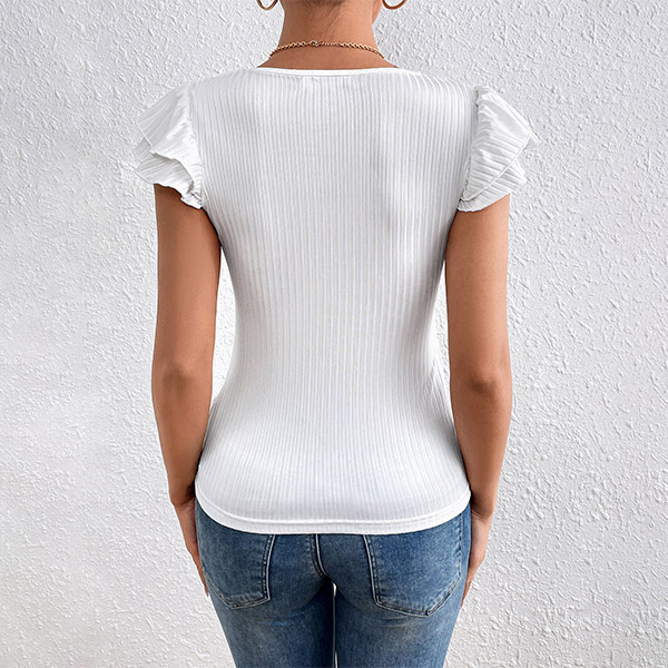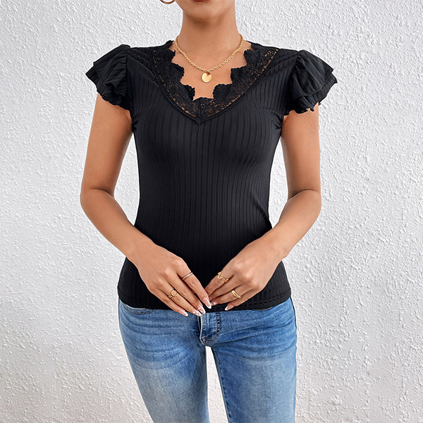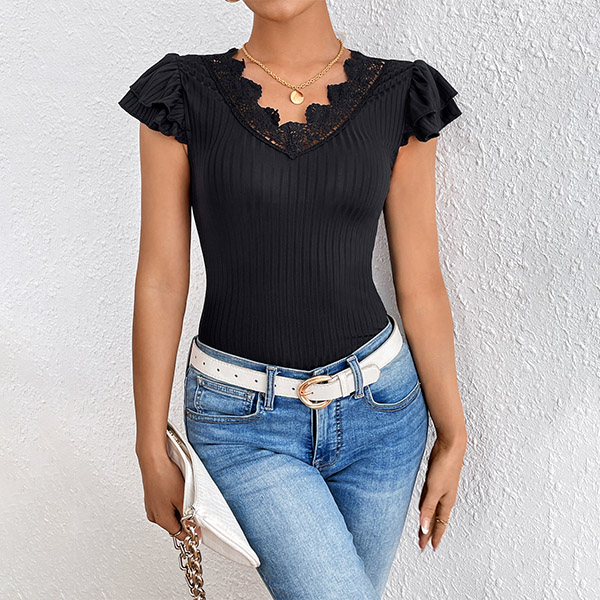 Fashion Lace Spliced V-neck Cap Sleeve Shirt